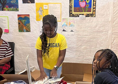 Dr. Kwakye and her family sorting donations for their trip to Ghana in April 2024. All donations pictured consist of unusued materials from operating rooms within the University of Michigan Hospital that were en route to be thrashed or recycled.