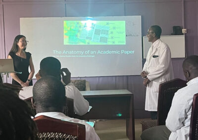 Erin Kim (University of Michigan M3 student) giving a lecture to surgery and medical residents in Ghanian teaching hospitals on how to create an academic paper.