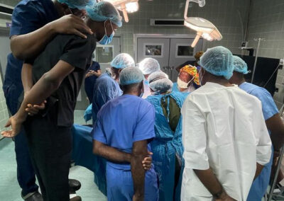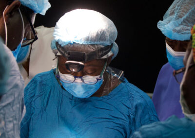 Dr. Huang operating with the Head of Surgery Department, Dr. Dally, and Dr. Agbedinu.