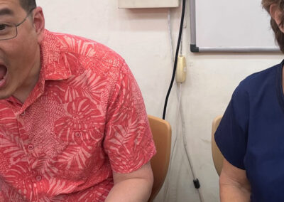 Photo depicting the University of Utah’s Dr. Huang after an operation in the teaching hospital.