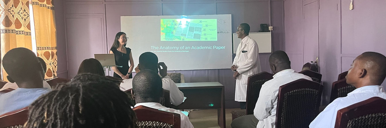 Erin Kim (University of Michigan M3 student) giving a lecture to surgery and medical residents in Ghanian teaching hospitals on how to create an academic paper.